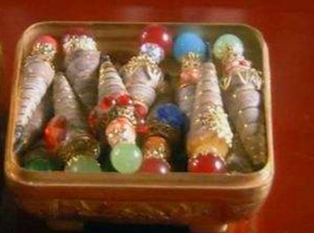 接下来,便是眉笔,就是古时的黛。战国时期,还未出现成形的黛,古代妇女是将柳树条烧焦之后涂在眉毛上。后来才出现了黛,黛是一种青色矿石,要将矿石磨成粉末再加水进行调和,再进行定型。在《甄嬛传》中,嬛嬛给嬷嬷送了一盒珍贵的螺子黛,螺子黛是波斯国制作而成的,是那个年代的贡品,直接沾水使用就好,也是很方便的。