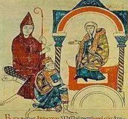 一位中世纪国王以职位象征授职予一主教
