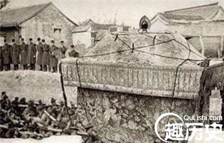 慈禧太后这位传奇的女性,在死后的葬礼上也呈现出几千年历史的古老礼仪。之前,就已经烧了大量纸糊的冥财,这代表着她心爱的财物,且做工精巧逼真、惟妙惟肖,其中包括钟表、梳妆台、烟杆及一大群纸糊的假人,而假人是在冥间伺候慈禧太后的。而现在,慈禧的尸体被扒出,已经成为一副干尸。